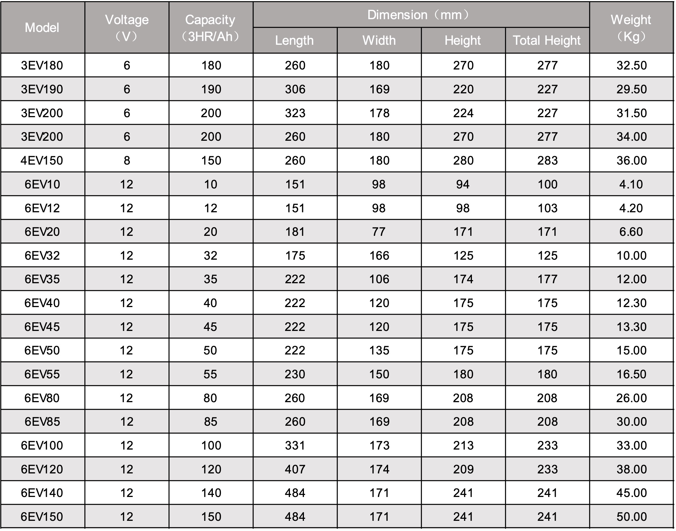 Campeón EV Catálogo de la batería: